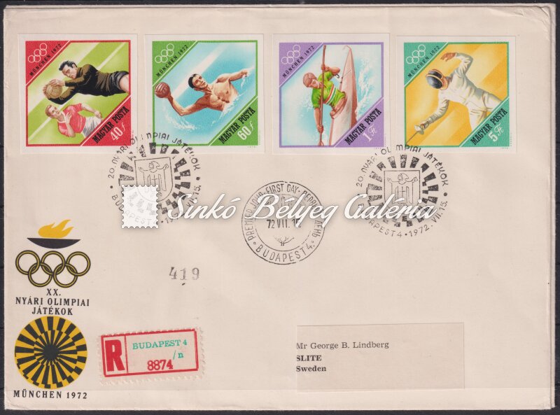 Leírás | 1972. Olimpia (VI.) - München FDC ajánlott levélen! / 1972. Olympics (VI.) - Munich On FDC registered letter! |
