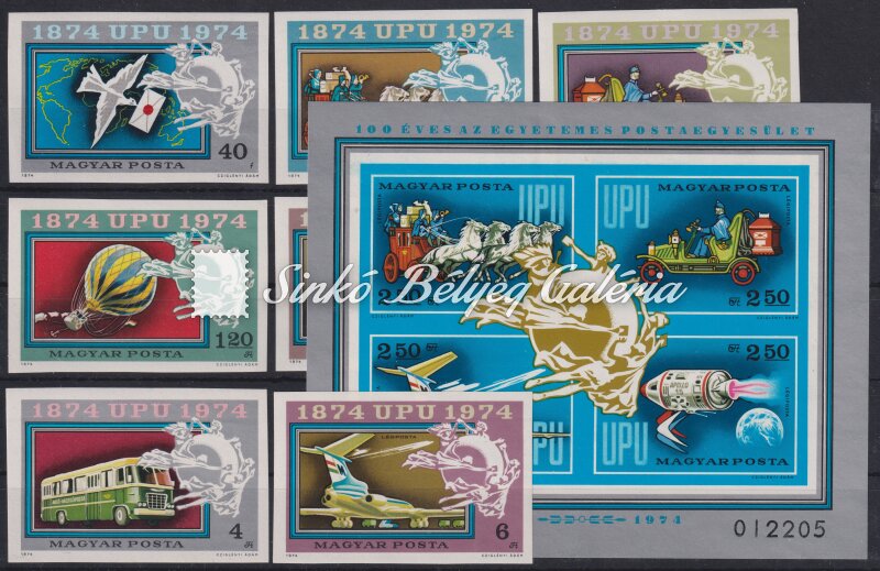 1974. 100 éves az Egyetemes Postaegyesület UPU (II.) + Blokk - L