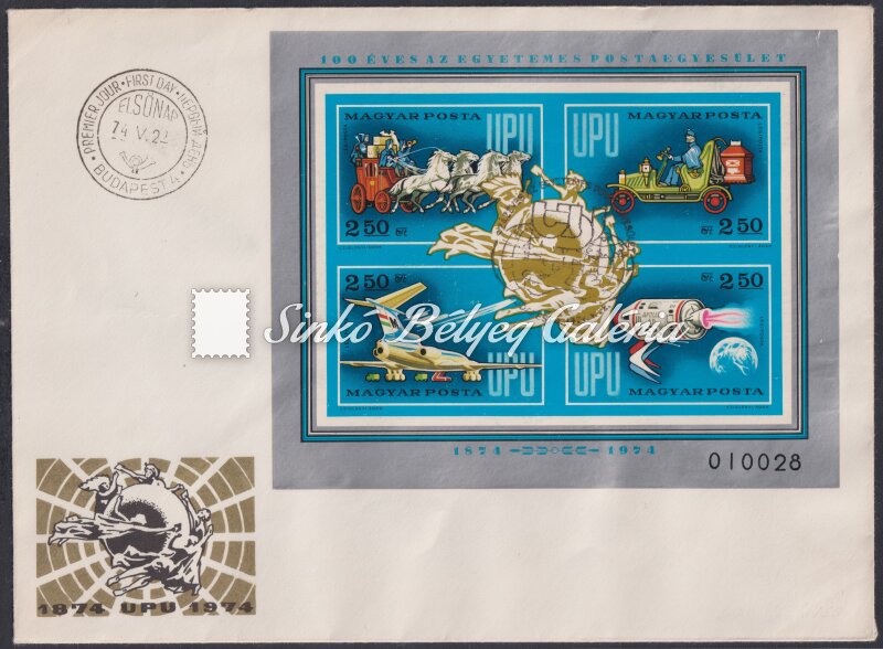 1974. 100 éves az Egyetemes Postaegyesület UPU (II.) - Blokk - L FDC