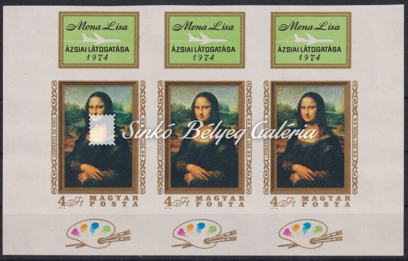 Leírás | 1974. Mona Lisa Fél kisív! Katalógus érték: 15.000 HUF / 1974. Mona Lisa Half miniature sheet! Catalogue value: 15.000 HUF |