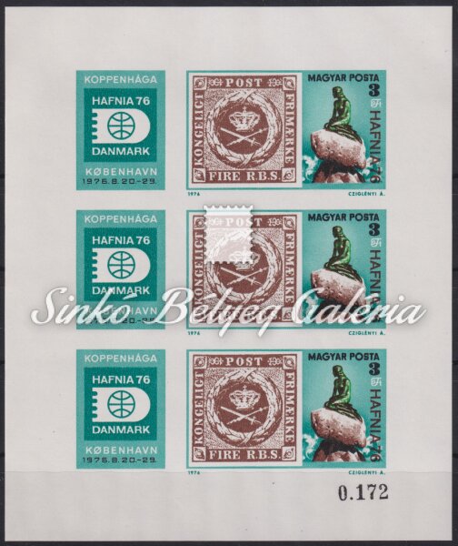Description | 1976. HAFNIA kisív Katalógus érték: 4.000 HUF / 1976. HAFNIA miniature sheet Catalogue value: 4.000 HUF |