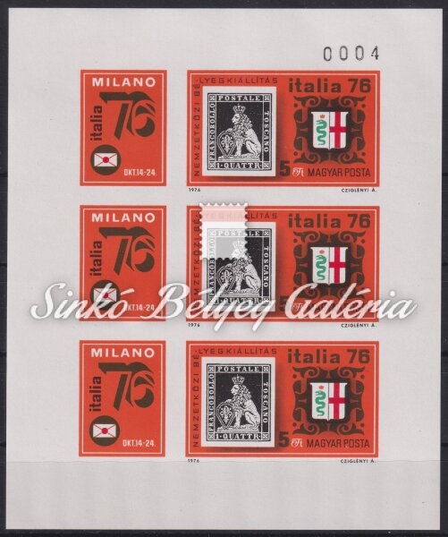 Leírás | 1976. ITALIA (I.) kisív Egyjegyű sorszámmal (4)! Katalógus érték: 5.000 HUF / 1976. ITALY (I.) miniature sheet With one-digit serial number (4)! Catalogue value: 5.000 HUF |