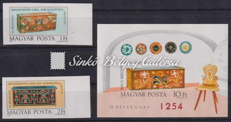 Leírás | 1981. Bélyegnap (54.) ívszéli sor + Blokk / 1981. Stamp Day (54.) set from the margin of the sheet + Block |