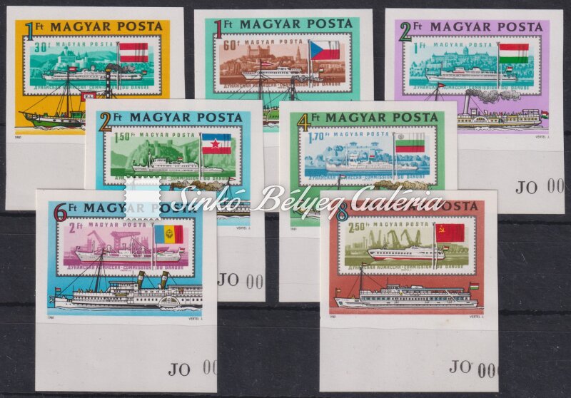 Leírás | 1981. Duna - 150 éve indult meg a menetrendszerű személyszállítás a Dunán, Pest és Bécs között Alsó ívszéli sor, az ívszélen betű és számjelzés (200% felár)! Katalógus érték: 12.000 HUF / 1981. Danube - 150 years since the start of regular passenger transport on the Danube between Pest and Vienna Set from the lower margin of the sheet, with letters and numbers on the margin (200% surcharge)! Catalogue value: 12.000 HUF |