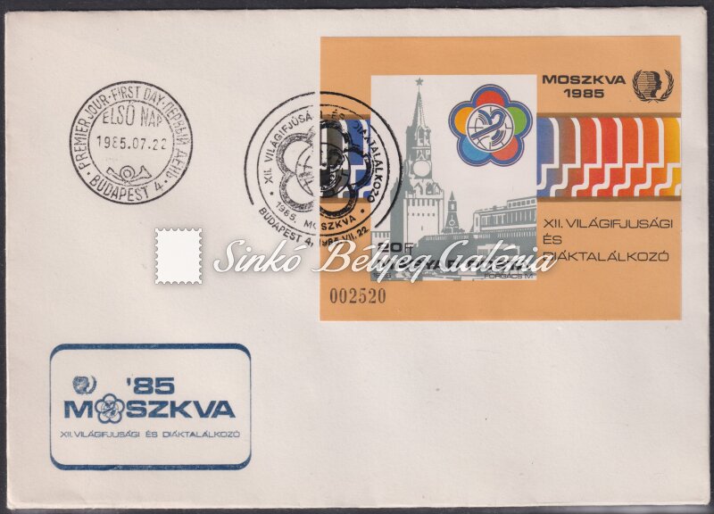 Leírás | 1985. VIT (II.) - Moszkva - Blokk FDC-n! / 1985. VIT (II.) - Moscow - Block on a FDC! |