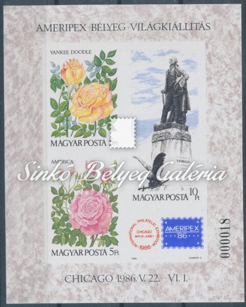 Description | 1986. AMERIPEX - Blokk Kétjegyű (18) sorszámmal! / 1986. AMERIPEX - Block With two digit (18) serial number! |