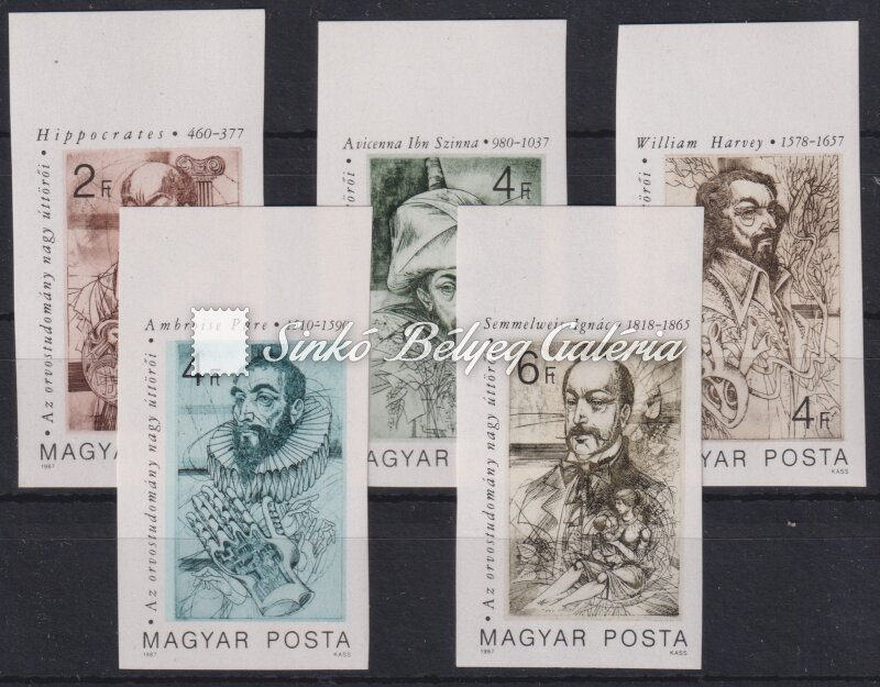 Leírás | 1987. Orvosok (I.) Felső ívszéli sor! Katalógus érték: 4.000 HUF / 1987. Doctors (I.) Set from the upper margin of the sheet! Catalogue value: 4.000 HUF |