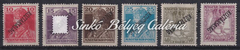 Leírás | 1918. Köztársaság - tévnyomat Károly-Zita sor fordított felülnyomattal! / 1918. Republic - misprint Karoly-Zita set with reverse overprints! |