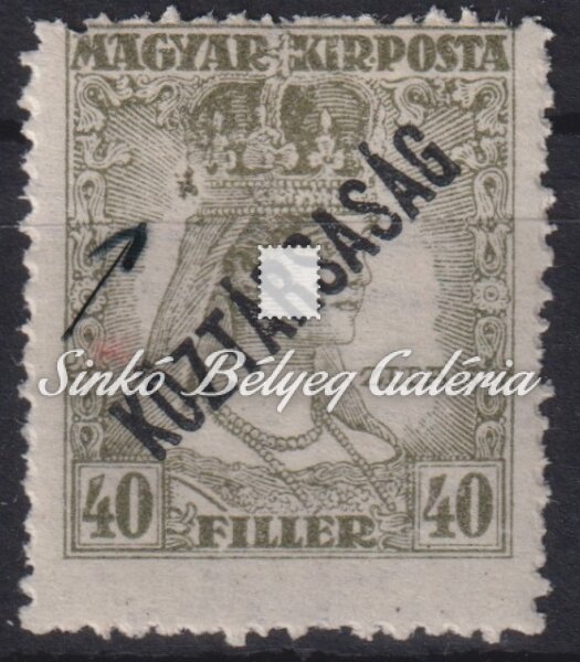 Leírás | 1918. Köztársaság - tévnyomat 40f Zita bélyegen látványos lemezhiba! / 1918. Republic - misprint Spectacular plate failure on 40f Zita stamp! |