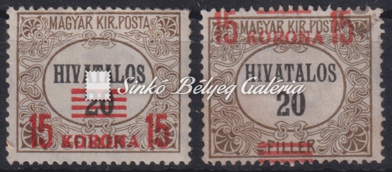 Leírás | 1921/24. Hivatalos - tévnyomat 15K/20f bélyegen a felülnyomat látványos eltolódása! / 1921/24. Official - misprint Spectacularly shifted overprint on 15K/20f stamp! |