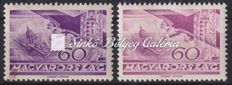 Description | 1936. Repülő (III.) - tévnyomat 60f bélyeg látványos színeltéréssel! / 1936. Airplane (III.) - misprint 60f stamp with spectacular colour difference! |