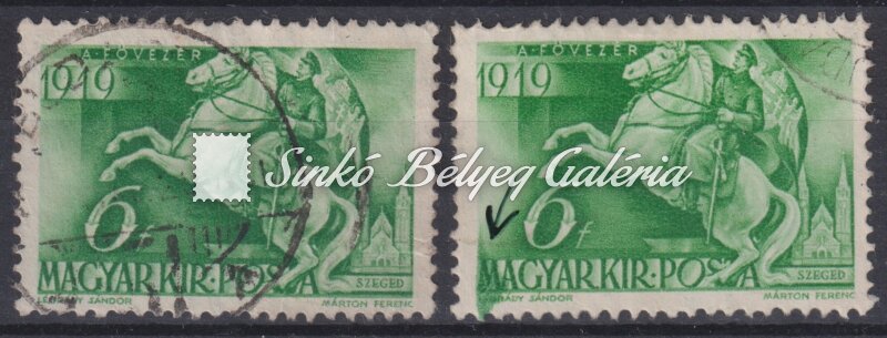 Leírás | 1940. Kormányzói 20 éves évforduló - tévnyomat 6f bélyeg bal alsó sarkában nagy festékfolt!!! / 1940. Govenors' 20th Anniversary - misprint There is a big paint spot in the left corner of 6f stamp!!! |