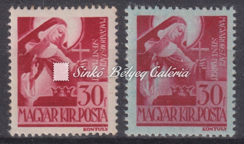 Description | 1945. Kisegítő bélyegek (IV.) - tévnyomat Szent Margit bélyeg felülnyomat nélkül csak kék alapnyomattal! / 1945. Auxiliary stamps (IV.) - misprint Saint Margaret stamp without overprint, only with blue base print! |
