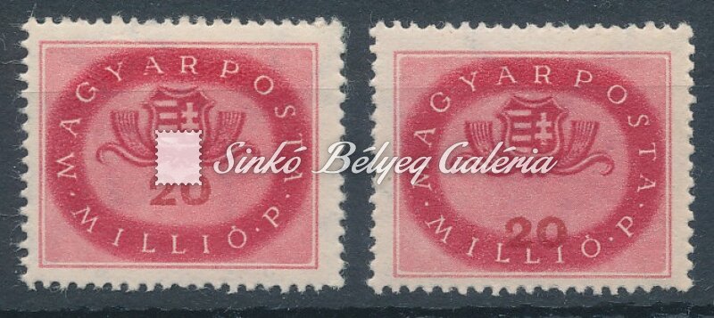 Leírás | 1946. Milliós - tévnyomat 20 millió P bélyegen az értékjelzés jelentős elcsúszása! / 1946. Million - misprint Significantly slipped denomination on 20 million P stamp! |