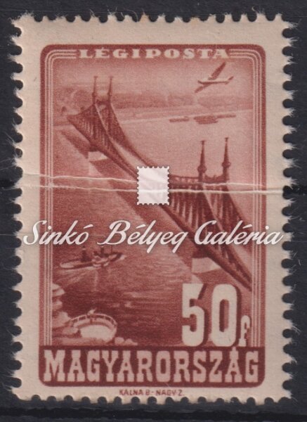 Description | 1947. Repülő (IV.) - L - tévnyomat 50f bélyegen vízszintes papírránc! / 1947. Airplane (IV.) - L - misprint Horizontal paper wrinkle on 50f stamp! |