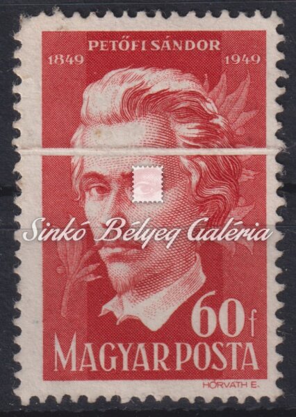 Leírás | 1949. Petőfi Sándor (II.) - tévnyomat 60f bélyegen vízszintes papírránc! / 1949. Sandor Petofi (II.) - misprint Horizontal paper wrinkle on 60f stamp! |