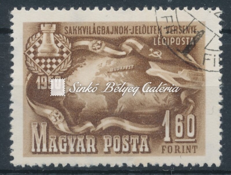 Leírás | 1950. Sakk (I.) - L - tévnyomat 1,60Ft bélyegen az 1-es és a 6-os között 1mm-es fehér kampó van! / 1950. Chess (I.) - L - misprint On 1,60Ft stamp, there is a 1mm white hook between the number 1 and 6! |