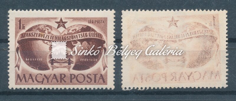 Leírás | 1950. Szakszervezet (IV.) - L - tévnyomat 1Ft bélyeg részleges gépszínátnyomattal! / 1950. Trade Union (IV.) - L - misprint 1Ft stamp with partial machine set-off! |