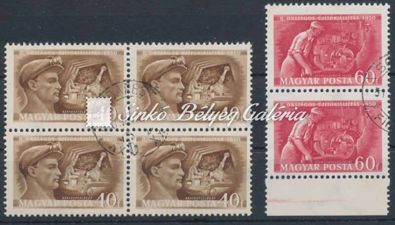 Leírás | 1950. Újítók - különlegesség 40f bélyeg 4-es tömb és 60f bélyegpár a, állású számvízjellel! / 1950. Innovators - speciality 40f stamp in a block of 4 and 60f stamp pair with a, position number watermark! |