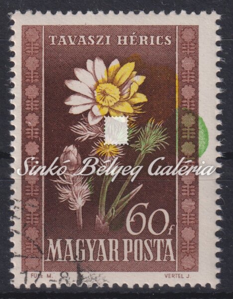 Leírás | 1950. Virág (I.) - tévnyomat 60f bélyegen a zöld színnyomat látványos elcsúszásza! / 1950. Flower (I.) - misprint Spectacularly slipped green colour print on 60f stamp! |