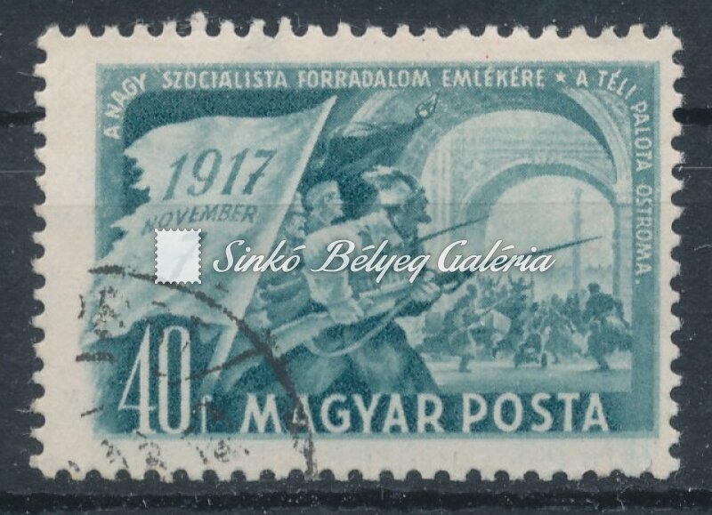Description | 1951. Nagy Októberi Szocialista Forradalom (II.) - különlegesség 40f bélyeg a, állású számvízjellel! / 1951. Great October Socialist Revolution (II.) - speciality 40f stamp with a, position number watermark! |