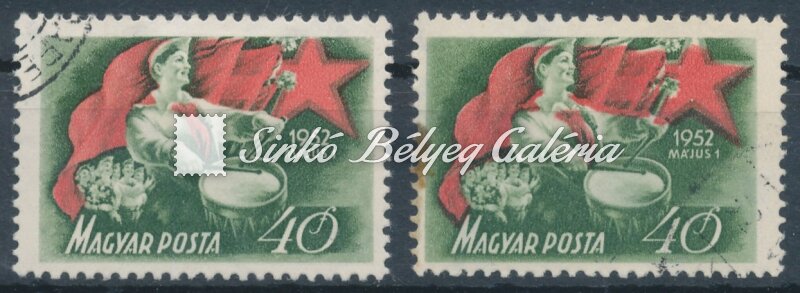 Description | 1952. Május 1. (III.) - tévnyomat 40f bélyeg a piros színnyomat eltolódásával! / 1952. 1th of May (III.) - misprint 40f stamp with shifted red colour print! |