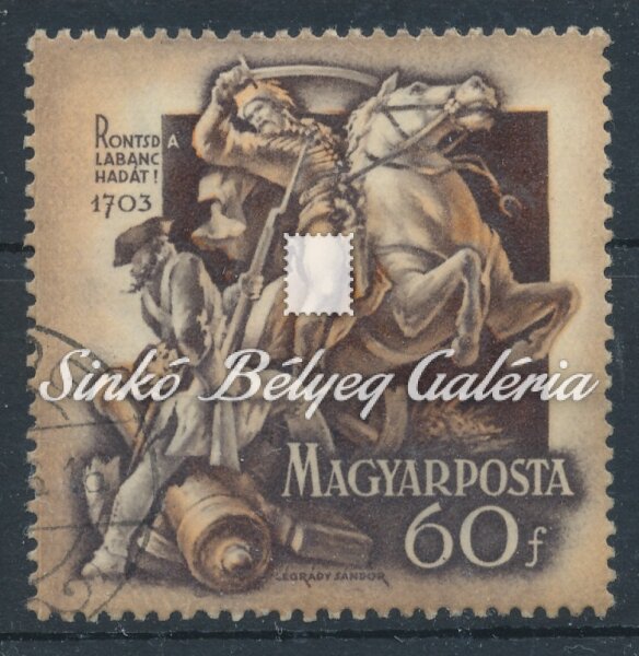 Description | 1953. II. Rákóczi Ferenc (II.) - különlegesség 60f bélyeg a, állású számvízjellel. / 1953. Francis Rakoczi II. (II.) - speciality 60f stamp with a, position number watermark. |