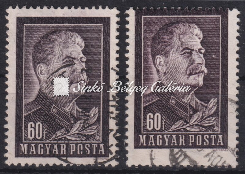 Leírás | 1953. Sztálin-Gyász - tévnyomat 60f bélyeg jelentősen elfogazva! / 1953. Stalin-Mourning - misprint 60f stamp with significantly defective perforation! |