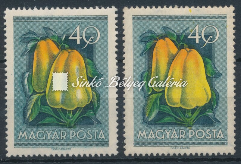 Description | 1954. Gyümölcsök (I.) - tévnyomat 40f bélyegen a zöld színnyomat részleges hiánya! / 1954. Fruits (I.) - misprint Partially missing green colour print from 40f stamp! |