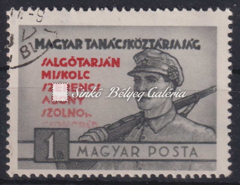 Leírás | 1954. Magyar Tanácsköztársaság (III.) - tévnyomat 1Ft bélyegen a SZOLNOK felirat "K" betűje szinte teljesen hiányzik! / 1954. Hungarian Soviet Republic (III.) - misprint On 1Ft stamp the letter "K" of the subtitle SZOLNOK is almost completely missing! |