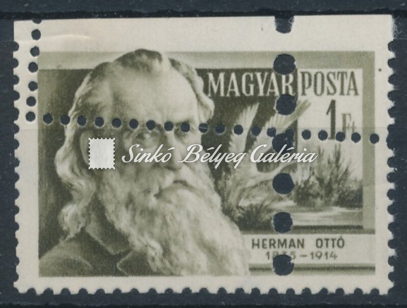 Description | 1954. Tudósok - tévnyomat 1Ft bélyeg ferde fogazás miatt megsemmisítő lyukasztással! / 1954. Scientists - misprint 1Ft stamp with annulling punching because of awry perforation! |