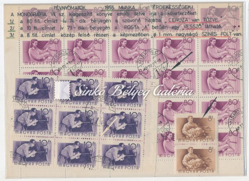 Description | 1955. Munka - tévnyomat 8f, 80f, 10Ft bélyegeken tévnyomatok. / 1955. Work - misprint Misprints on 8f, 80f, 10Ft stamps. |