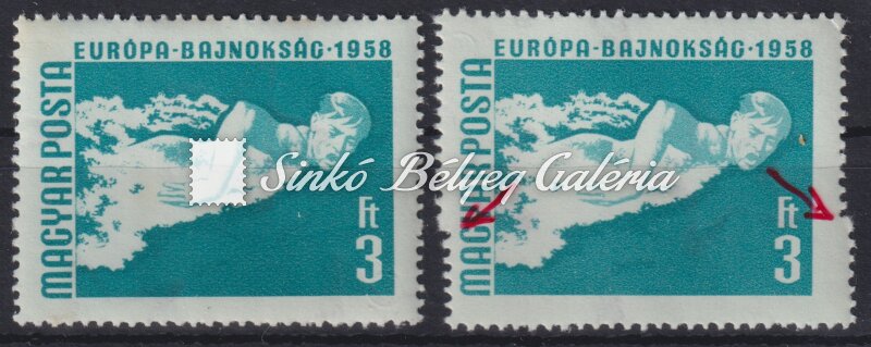 Leírás | 1958. Sport (III.) - tévnyomat 3Ft bélyegen a fogazógép az egyik fognál megugrott! / 1958. Sport (III.) - misprint On 3Ft stamp, the perforation machine jumped on one theeth! |