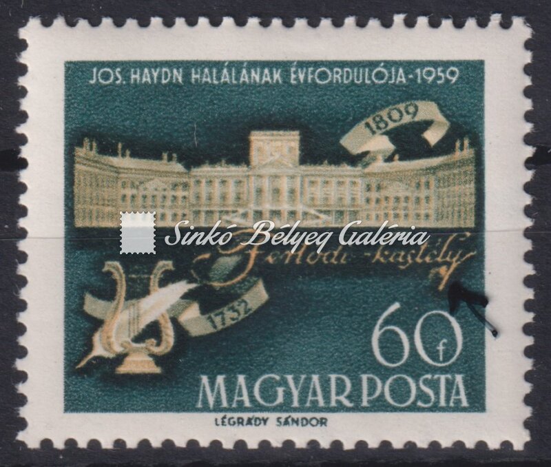 Leírás | 1959. Joseph Haydn és Friedrich Schiller - tévnyomat 60f bélyegen a KASTÉLY szó "ly" betűjén folt van! / 1959. Joseph Haydn and Friedrich Schiller - misprint On 60f stamp there is a spot on the letter "ly" of the word KASTÉLY! |