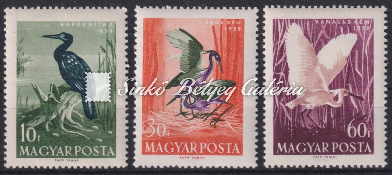 Description | 1959. Madarak (II.) - különlegesség XIII. B teljes sor fekvő csillag vízjellel! / 1959. Birds (II.) - speciality XIII. B complete set with lying star watermark! |