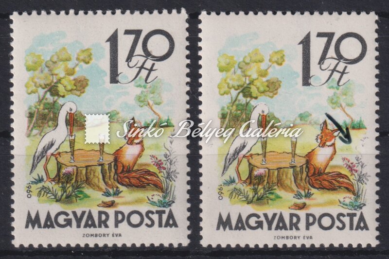 Description | 1960. Mese (II.) - tévnyomat 1,70Ft bélyegen hiányos szürke színnyomat! / 1960. Tale (II.) - misprint Incomplete grey colour print on 1,70Ft stamp! |