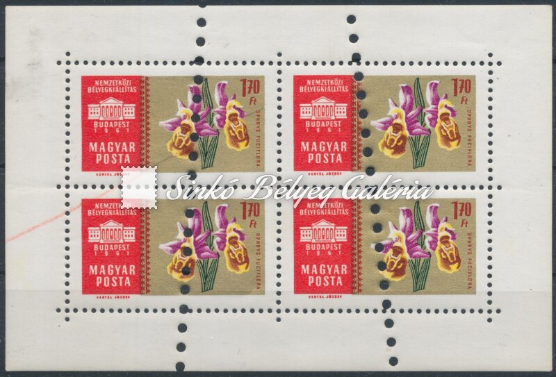 Description | 1961. Nemzetközi Bélyegkiállítás, Budapest (II.) - tévnyomat 1,70Ft kisív megsemmisítő lyukasztással! / 1961. International Stamp Exhibition, Budapest (II.) - misprint 1,70Ft miniature sheet with annulling punching! |