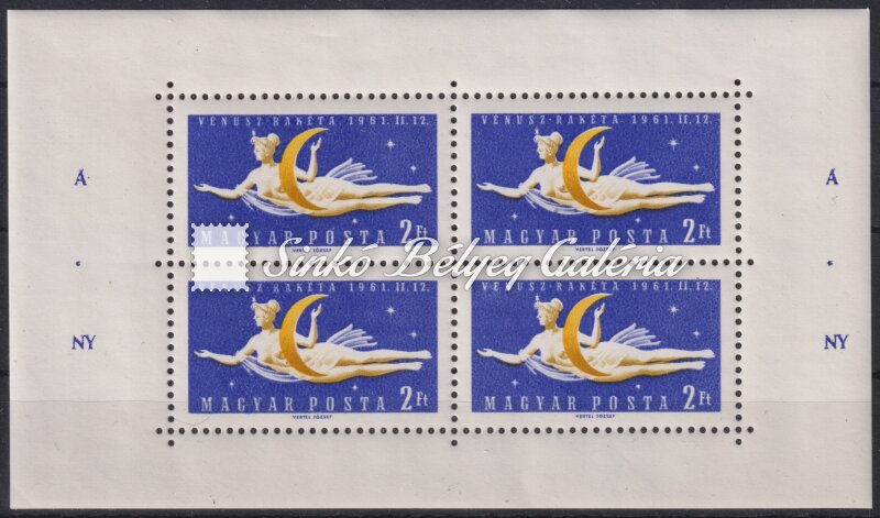 Description | 1961. Vénusz-Rakéta kisív - tévnyomat Eltolódott Á.NY. felirat! / 1961. Venus-Rocket miniature sheet - misprint Shifted A.NY. subtitle! |
