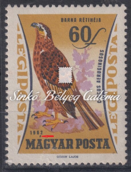 Leírás | 1962. Madarak (IV.) - Ragadozó Madarak - L - tévnyomat 60f bélyegen a MAGYAR szó "A" betűjén kis ékezet! / 1962. Birds (IV.) - Raptores - L - misprint On 60f stamp, there is a black accent on the letter "A" of the word MAGYAR! |