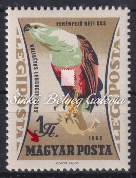 Leírás | 1962. Madarak (IV.) - Ragadozó Madarak - L - tévnyomat 1Ft bélyegen a MAGYAR szó első "A" betűjén kis ékezet van! / 1962. Birds (IV.) - Raptores - L - misprint On 1Ft stamp there is a small accent on the first letter "A" of the word MAGYAR! |