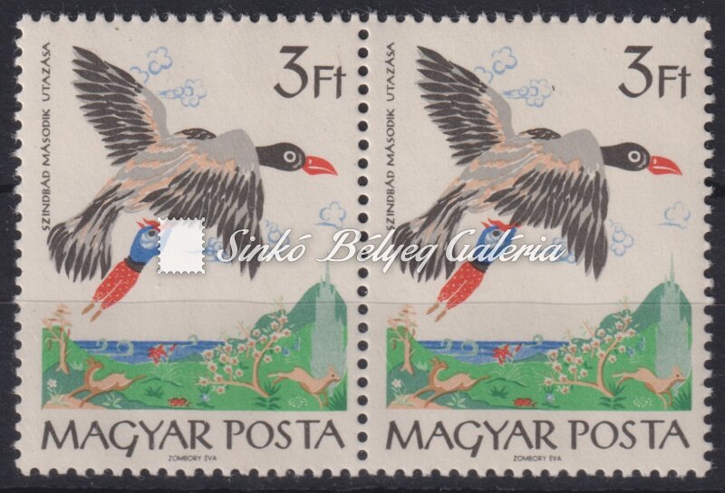 Leírás | 1965. Mese (III.) - tévnyomat 3Ft bélyegpár bal oldali bélyegén Szindbád mellett fekete folt van! / 1965. Tale (III.) - misprint On the left stamp of the 3Ft stamp pair, there is a black spot next to Sindbad! |