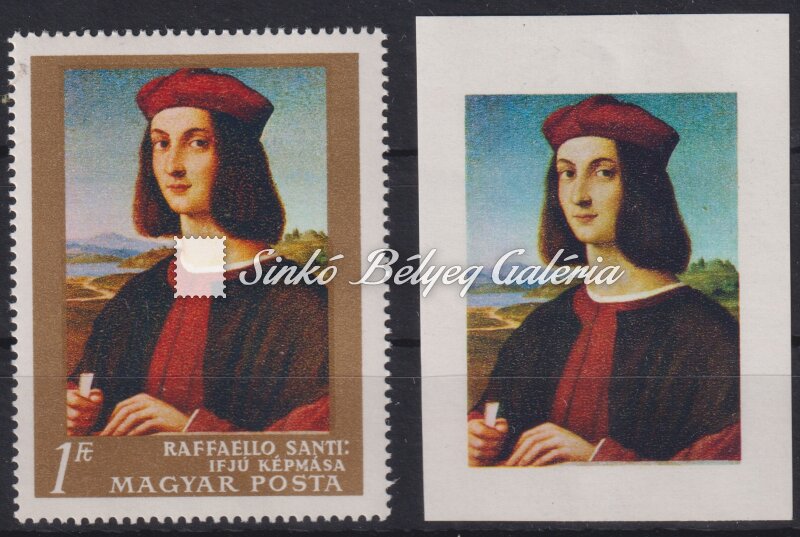 Description | 1968. Festmények (V.) - próbanyomat 1Ft vágott bélyeg próbanyomata gumi nélküli papíron, arany színnyomat nélkül! / 1968. Paintings (V.) - test print 1Ft imperforate stamp' test print on paper without gum and gold colour print! |