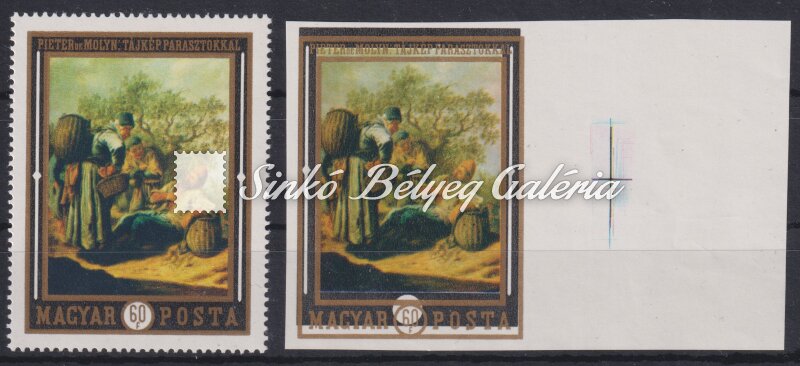 Leírás | 1969. Festmények (VII.) - tévnyomat Illesztő keresztes ívszéli 60f bélyegen az arany színnyomat látványos elcsúszása! / 1969. Paintings (VII.) - misprint 60f stamp from the margin of the sheet with matching cross, with spectacularly slipped gold colour print! |