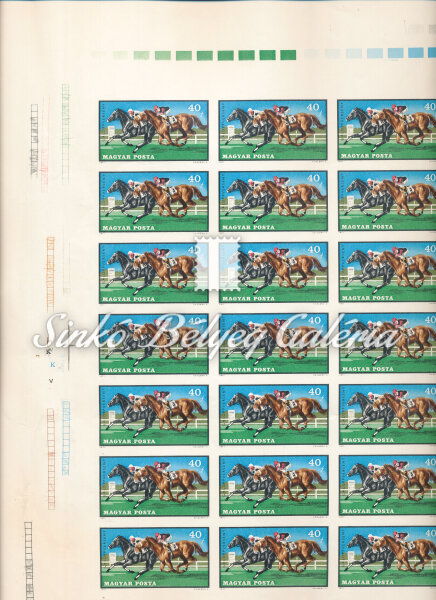Description | 1971. Lósport (II.) - tévnyomat Sárga színnyomat nélküli teljes ív. (42db) / 1971. Horse sport (II.) - misprint Full sheet without the yellow colour print. (42 stamps) |