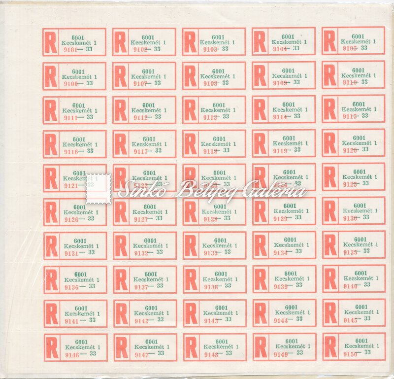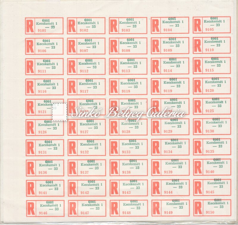 Description | 1974. Ragjegy - Nyomdai tévnyomat Postai 5x10 darabos íven a zöld színnyomat eltolódott! Azonos postai iktatószámmal. / 1974. Label number - Typographical misprint Shifted green colour print on a postal 5x10 sheet! With identical postal file number. |