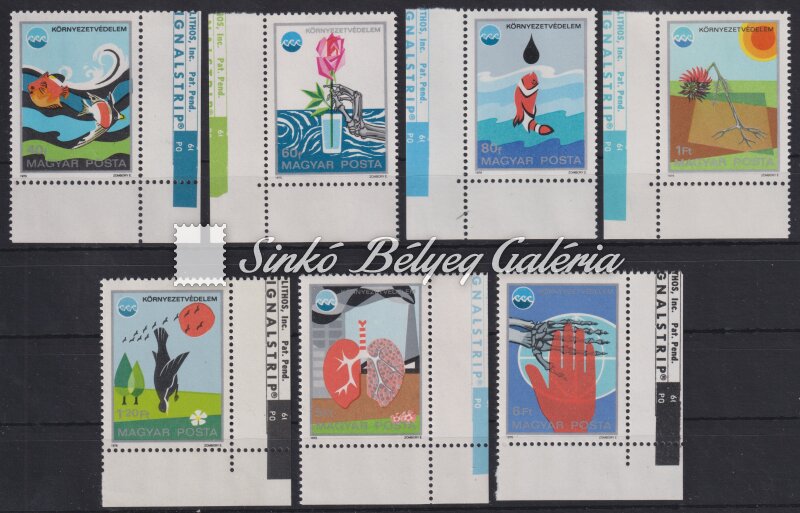 Description | 1975. Környezetvédelem (I.) - különlegesség Ívsarki fogazott sor SIGNALSTRIP nyomdai felirattal! / 1975. Nature Protection (I.) - speciality Perforated set from the corner of the sheet with SIGNALSTRIP printed inscription! |
