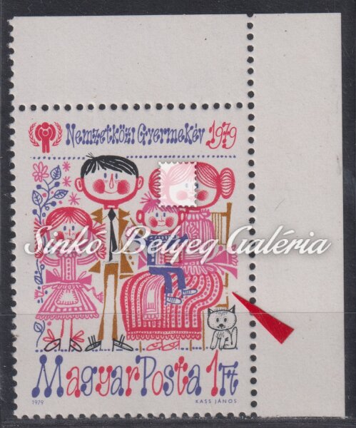 Description | 1979. Nemzetközi Gyermekév (I.) - tévnyomat Ívsarki 1Ft bélyegen a szék lába törött! / 1979. International Year of the Child (I.) - misprint On 1Ft stamp from the corner of the sheet, the leg of the chair is broken! |