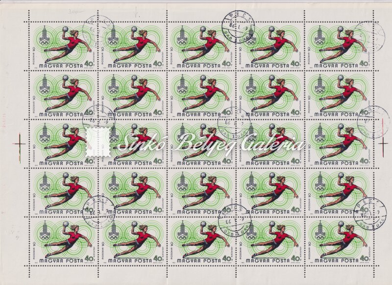 Leírás | 1980. Olimpia (VIII.) - Moszkva - L - tévnyomat 40f bélyeg 25-ös ívben, benne a MAGYAP POSTA tévnyomat! / 1980. Olympics (VIII.) - Moscow - L - misprint 40f stamp in a sheet of 25 stamps, with the MAGYAP POSTA misprint! |