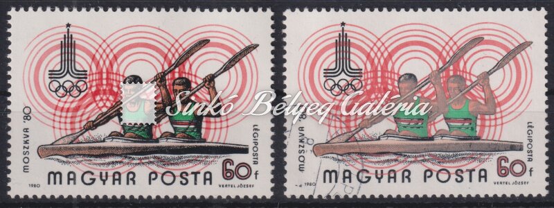 Description | 1980. Olimpia (VIII.) - Moszkva - L - tévnyomat 60f bélyegen felcserélt nyomási sorrend, a fekete szín felett van a rózsaszín! / 1980. Olympics (VIII.) - Moscow - L - misprint Swapped printing sequence on 60f stamp, pink colour is above black! |