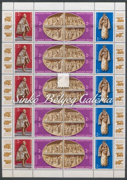 Description | 1982. A Vatikáni Magyar Kápolna Műalkotásai - tévnyomat Teljes ív a rózsaszín nyomat teljes gépszínátnyomatával! / 1982. Artistic Creations of the Hungarian Chapel of Vatican Full sheet with the pink print's complete machine colour print! |